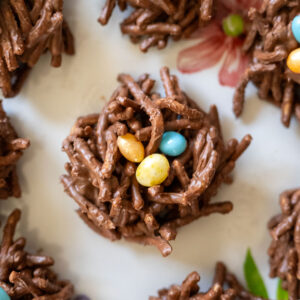 These little nests are perfect for spring gatherings, Easter baskets, or a fun afternoon snack. They’ll stay fresh in an airtight container at room temperature for up to a week—though they rarely last that long in my house! If you’re in a warm climate, pop them in the fridge to keep the chocolate from getting melty.