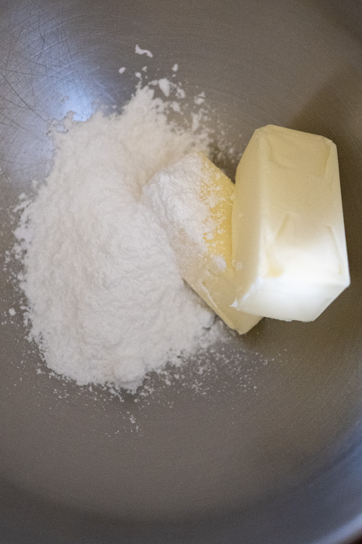 • Cream butter and sugar: Beat the softened butter and ½ cup powdered sugar until light and fluffy (2–3 minutes). Mix in the vanilla.
