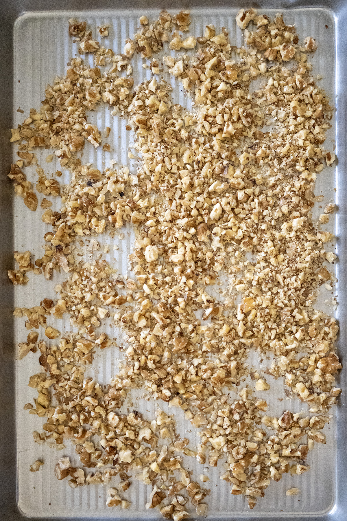 • Toast the nuts (don't skip this!): Spread the chopped nuts on a baking sheet and toast for 5–7 minutes until fragrant. Cool completely, then finely chop if needed (a food processor makes this quick).
