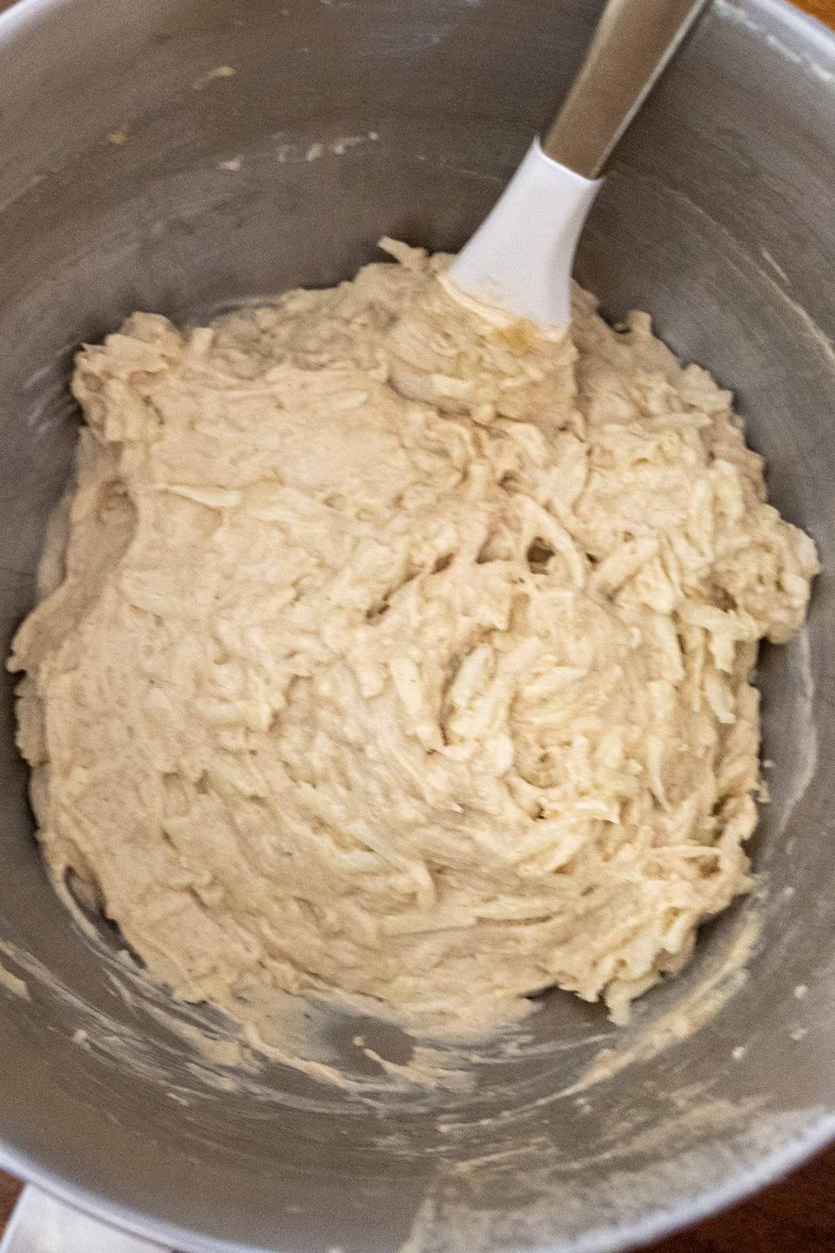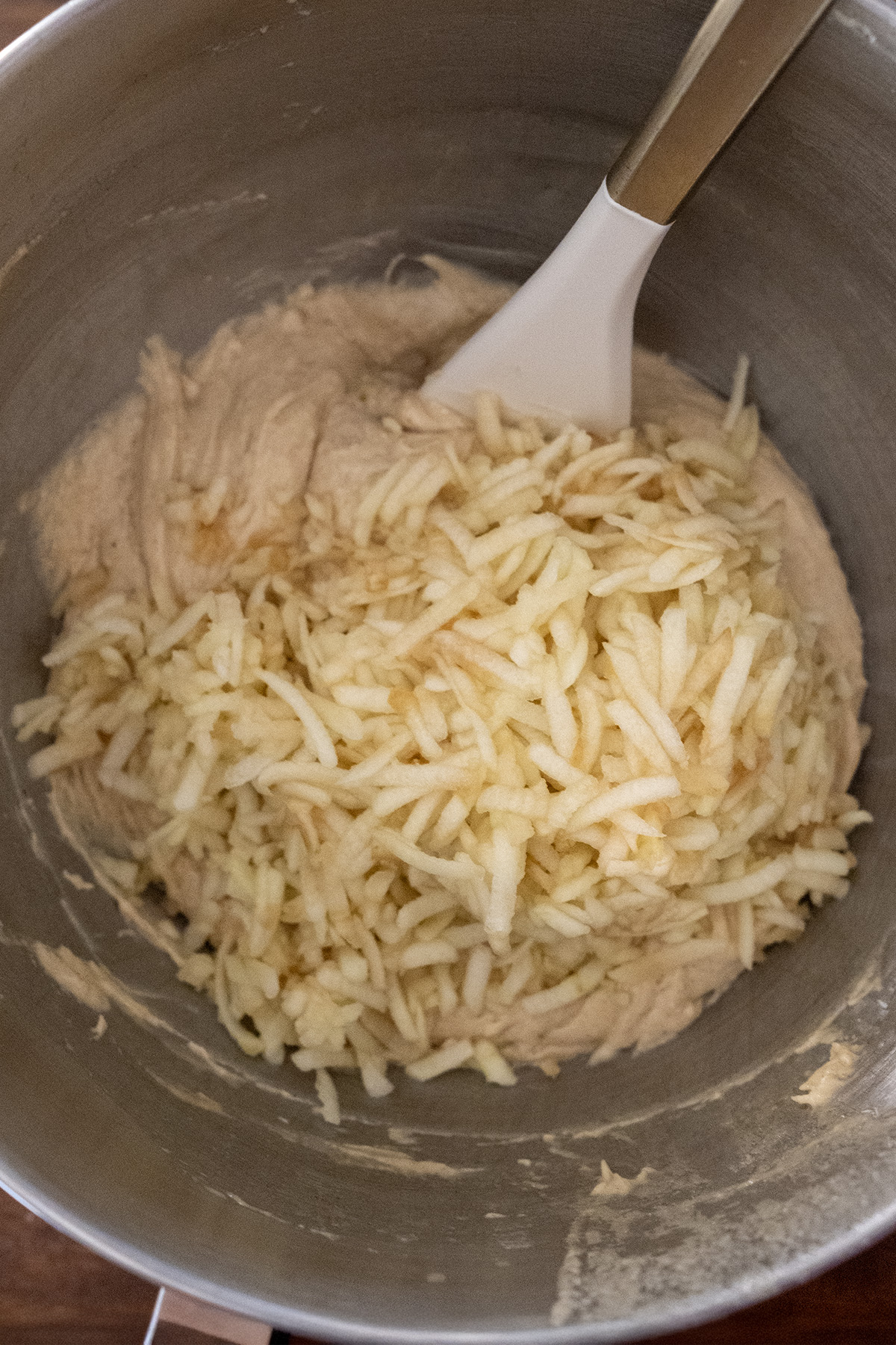 - Why Grate the Apples? Grating the apples (using a large-holed grater, like the KitchenAid attachment) ensures they cook fully and release their juices evenly, making the cake extra moist. Granny Smith adds a tart kick, while Honeycrisp leans sweeter—mix them for a balanced flavor!