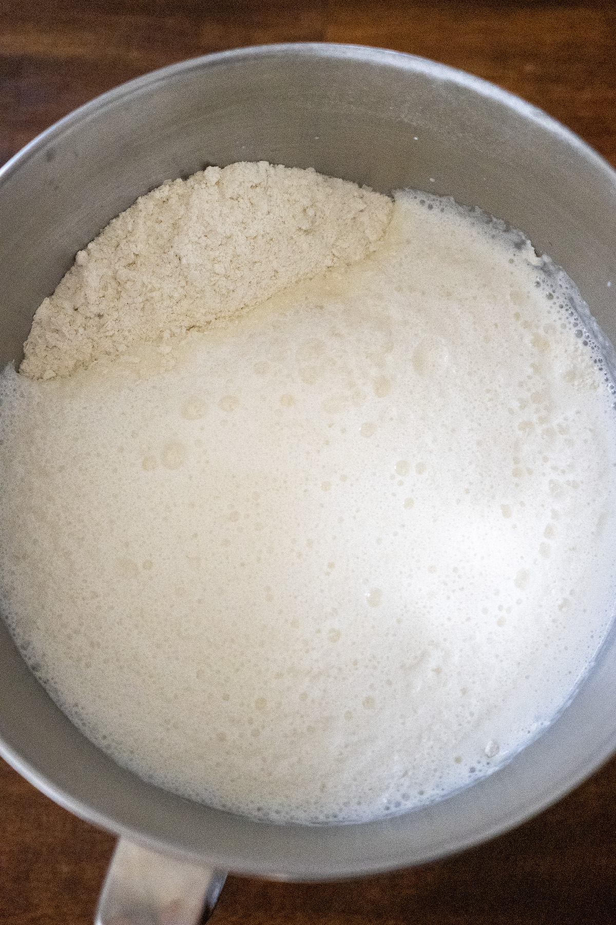 - 2 ½ c. (300 g) unbleached all-purpose flour (RECOMMEND WEIGHING)