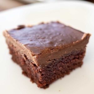 Once you taste my mom’s Chocolate Sheet Cake you’ll be hooked. This ultra moist and tender dessert has a beautiful glossy poured frosting. beauties topped with glossy poured frosting, you’ll understand why they are so popular. These are sometimes called Buttermilk Brownies or Cake Brownies but regardless of what you call them, you are in for a treat!