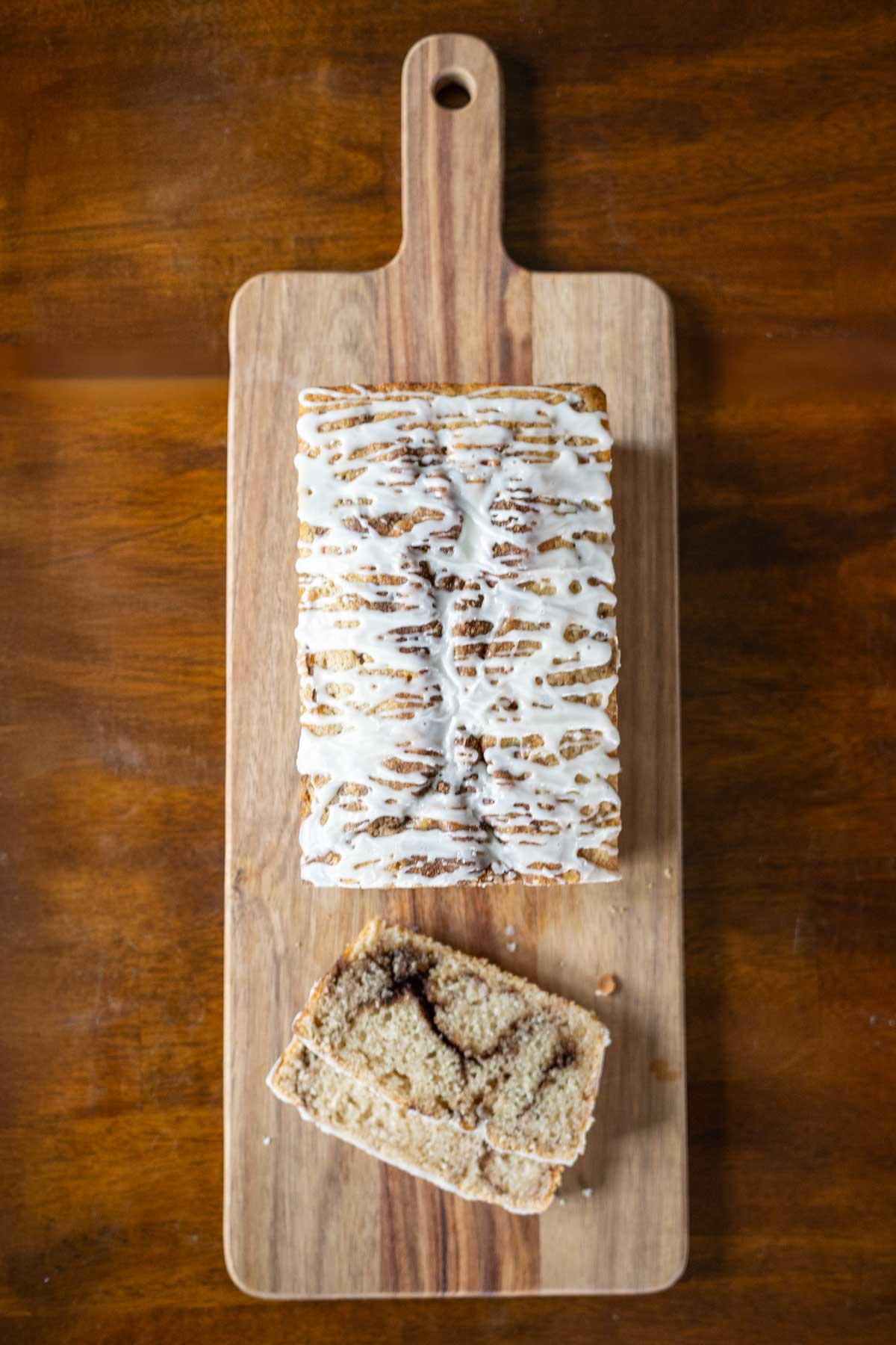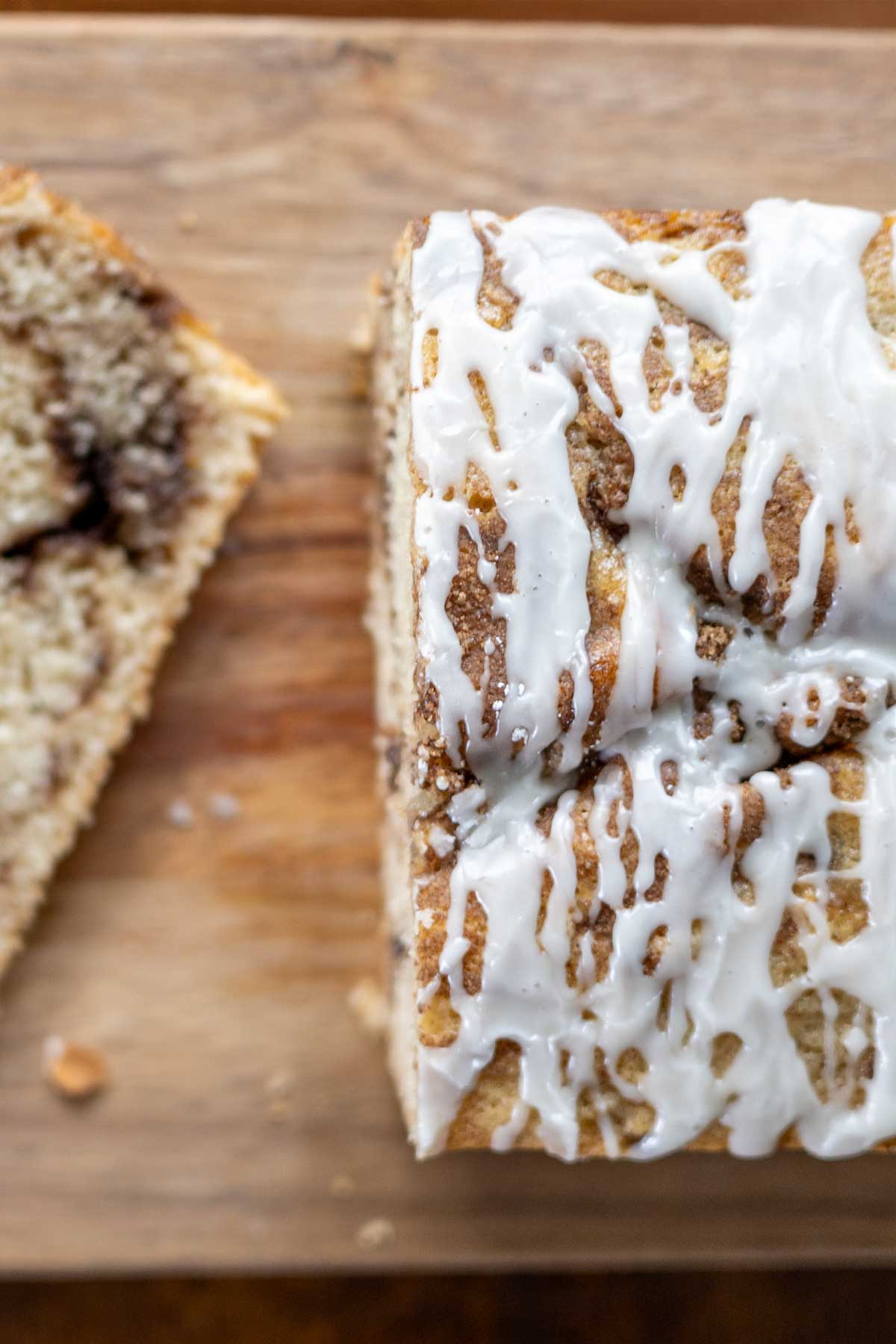 You might notice that this cinnamon swirl quick bread doesn’t have a tall, domed top like some other quick breads—and that’s perfectly normal! Swirl breads, whether yeast-based or quick, often have a flatter or slightly mounded top for a couple of reasons: