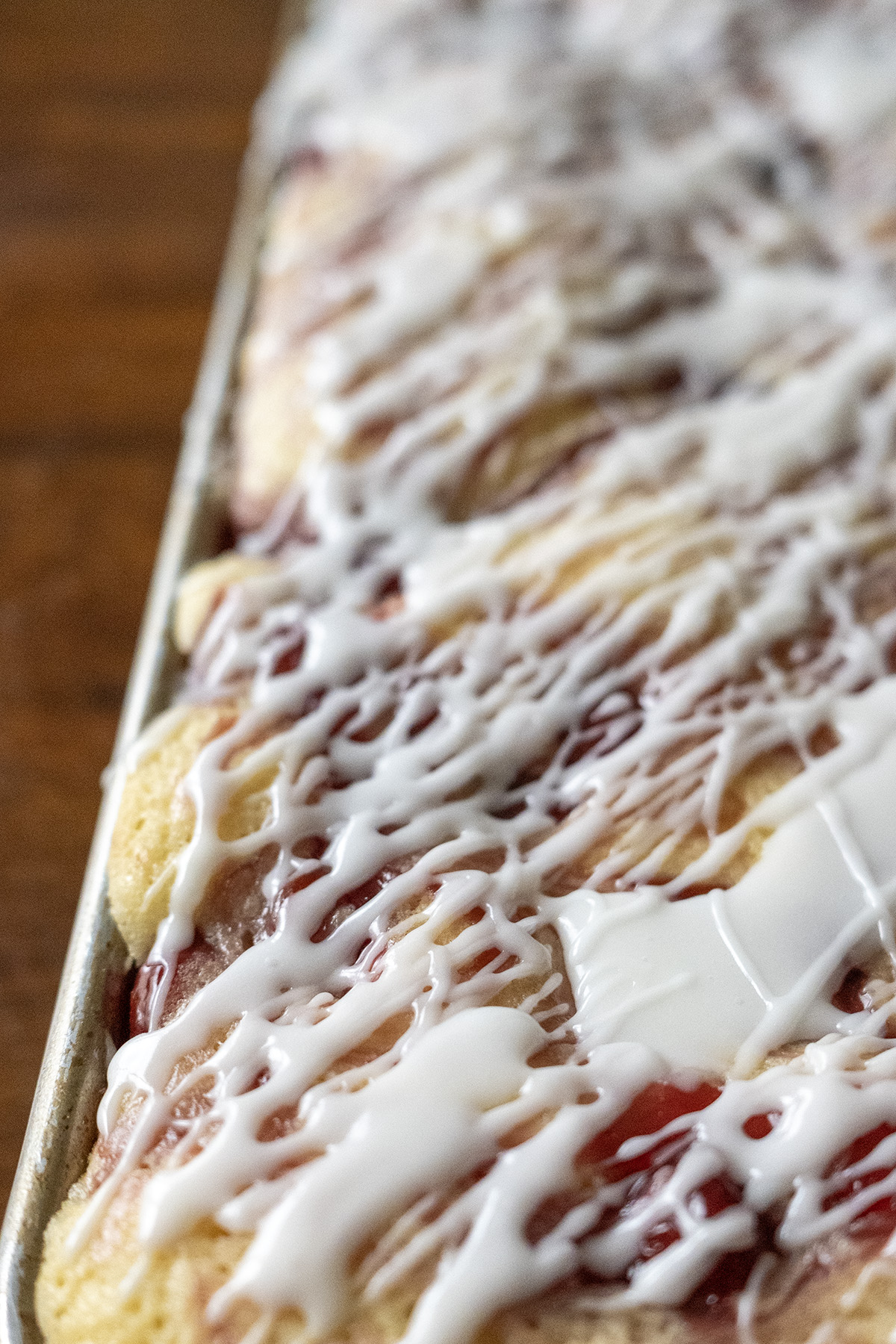 • Cool completely in the pan. Whisk glaze ingredients until smooth and drizzle over the cooled cake.