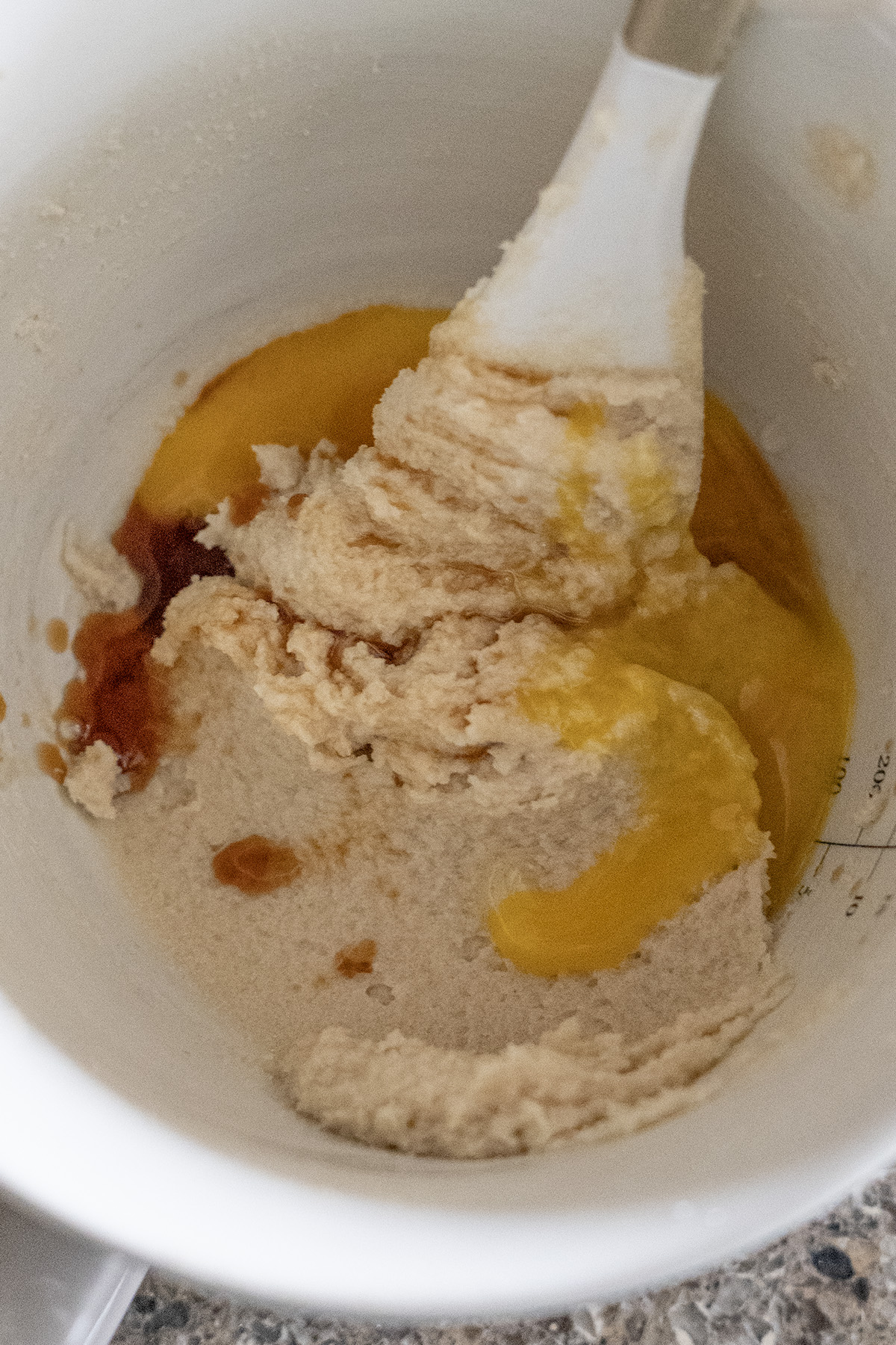 • Mix in the egg yolk and vanilla extract until fully incorporated.