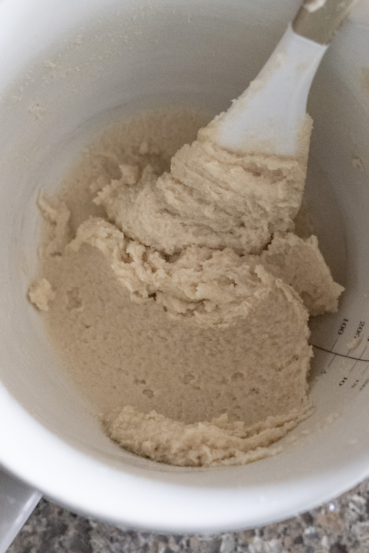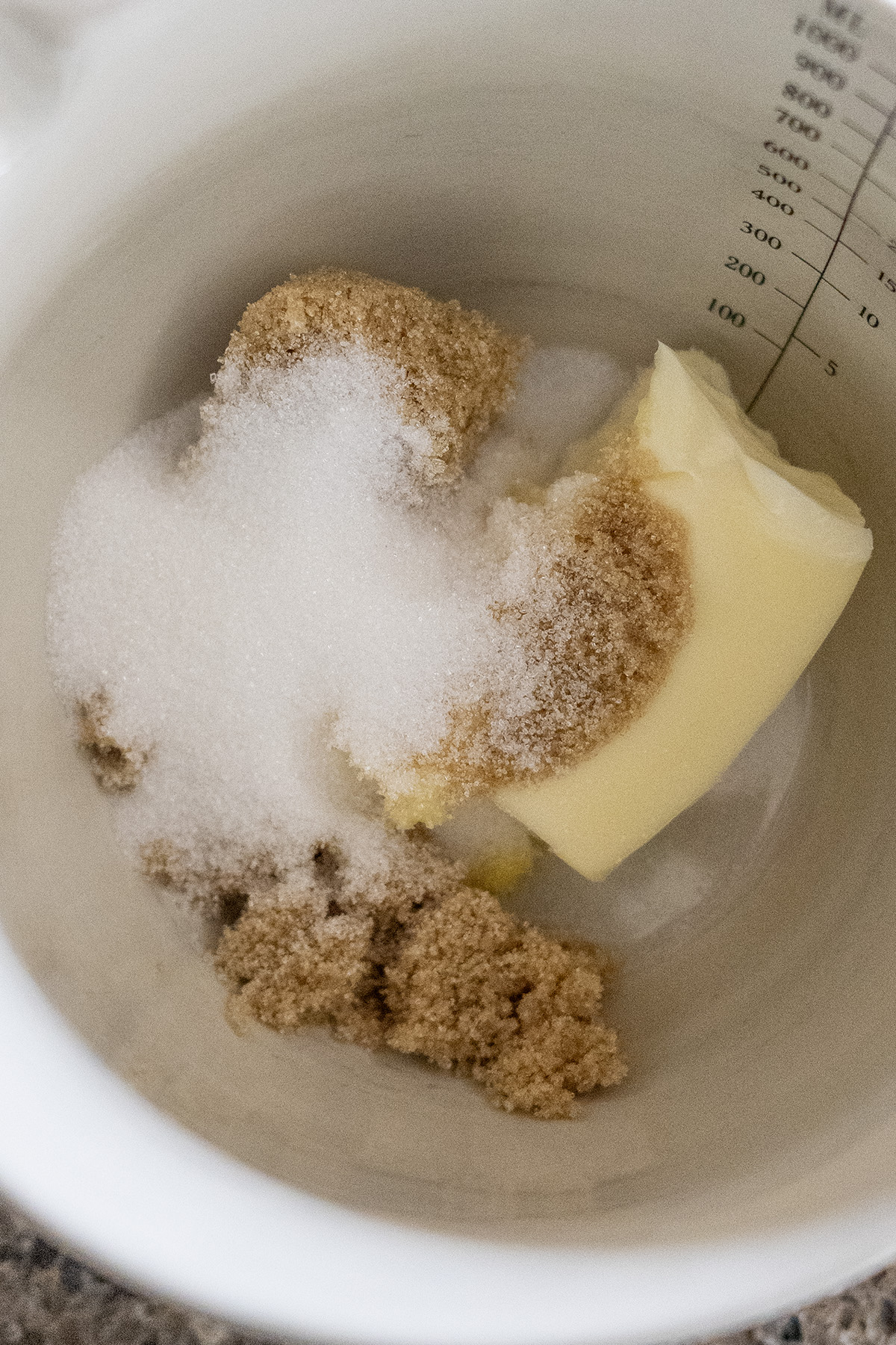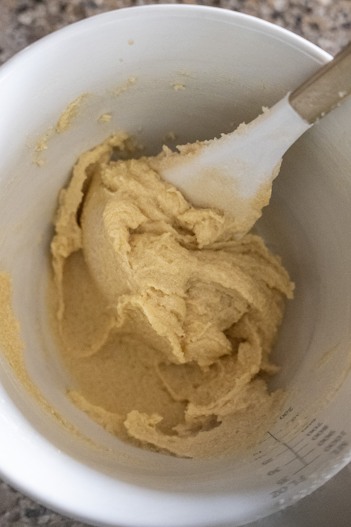 • In a medium bowl, cream the butter and both sugars together with a spatula until smooth and well combined.