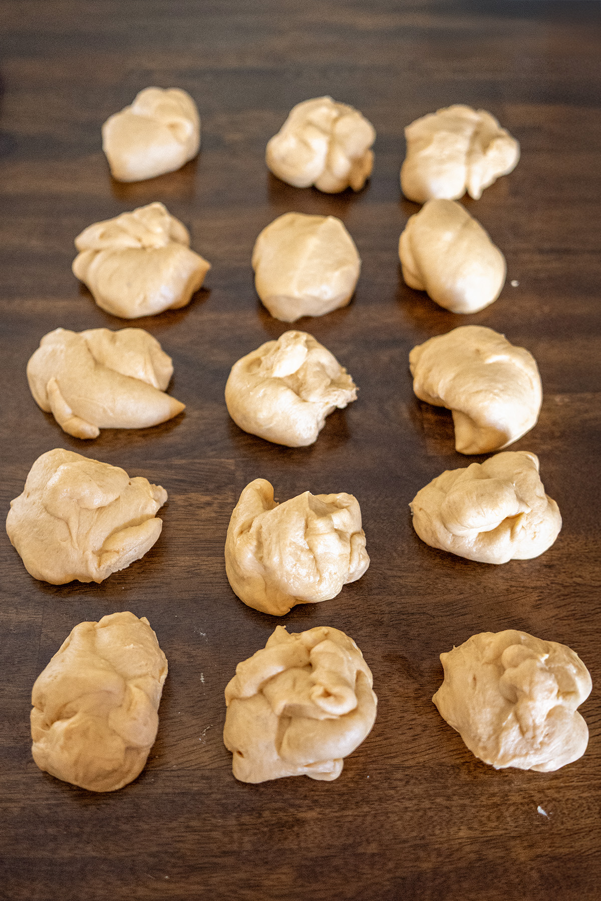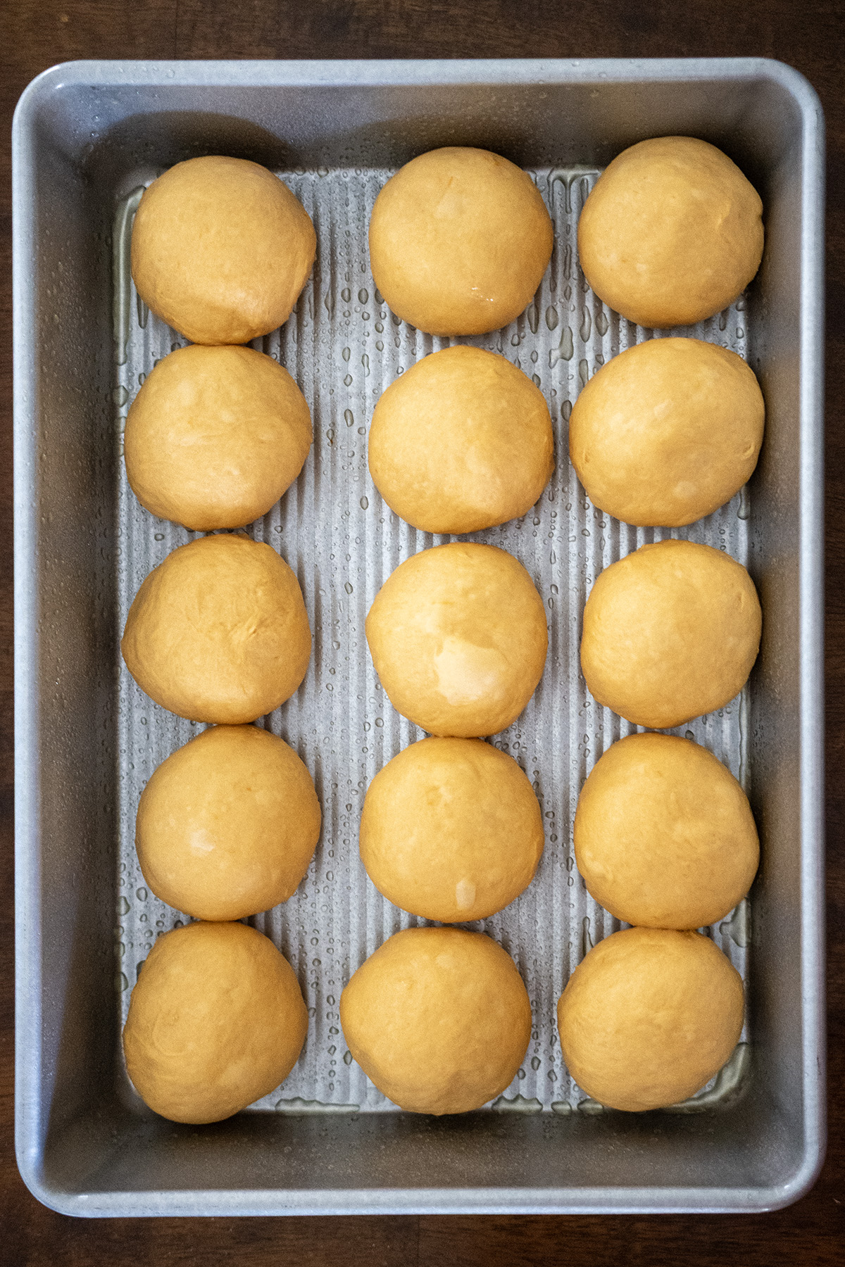 - 15 Rolls: (70-75g each) for slider-sized rolls that touch when risen in a 9×13-inch pan.