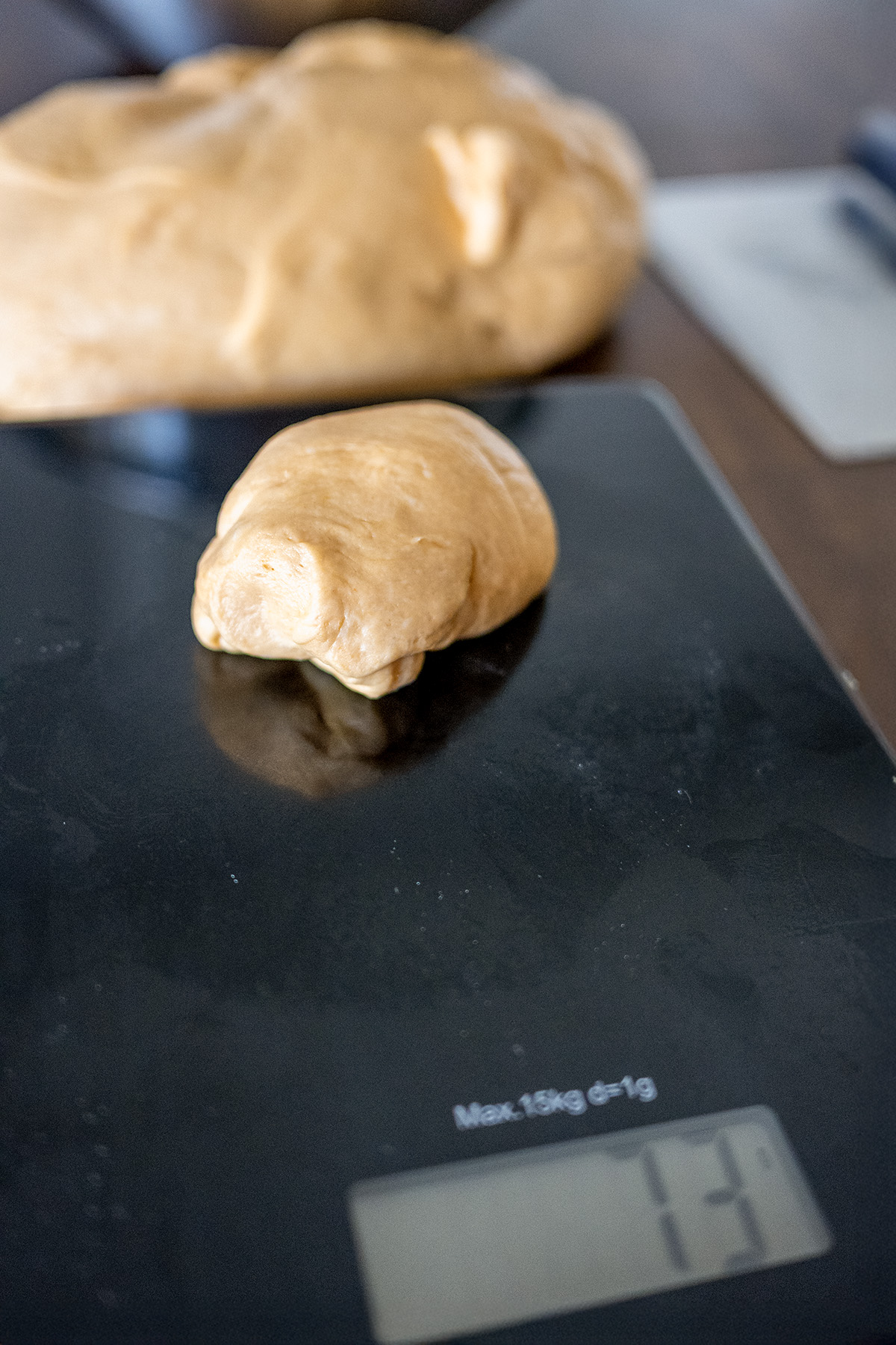 - Crescents: (50-75g each): Roll dough into a 12-inch circle, cut into 12-15 wedges, and roll from the wide end.