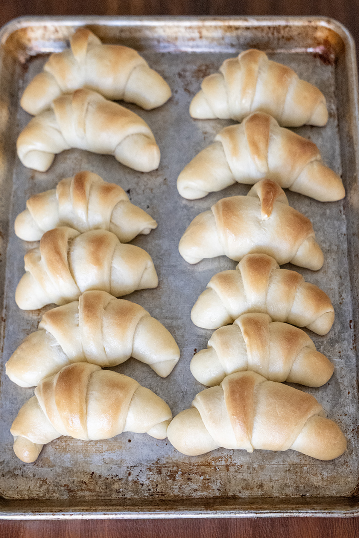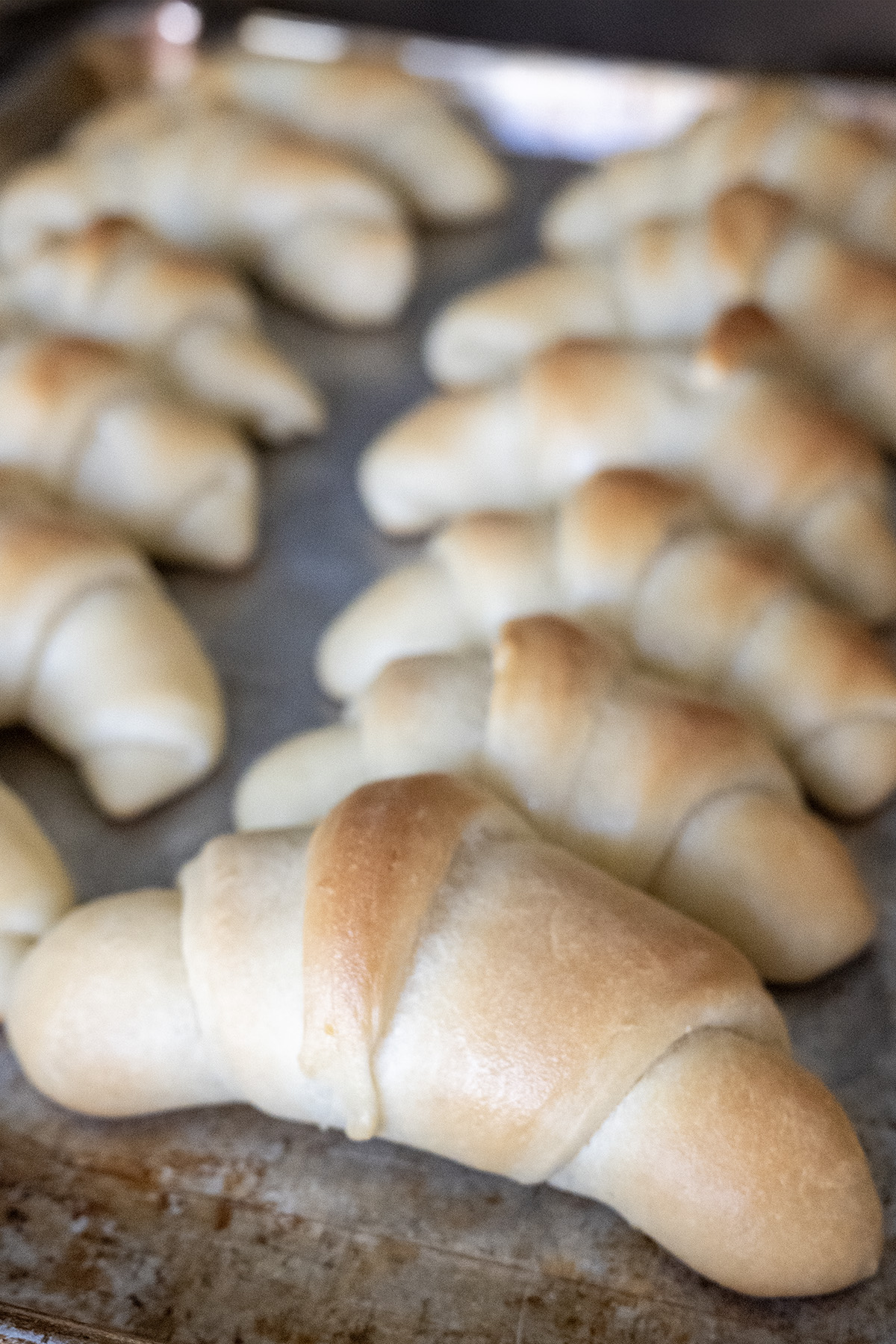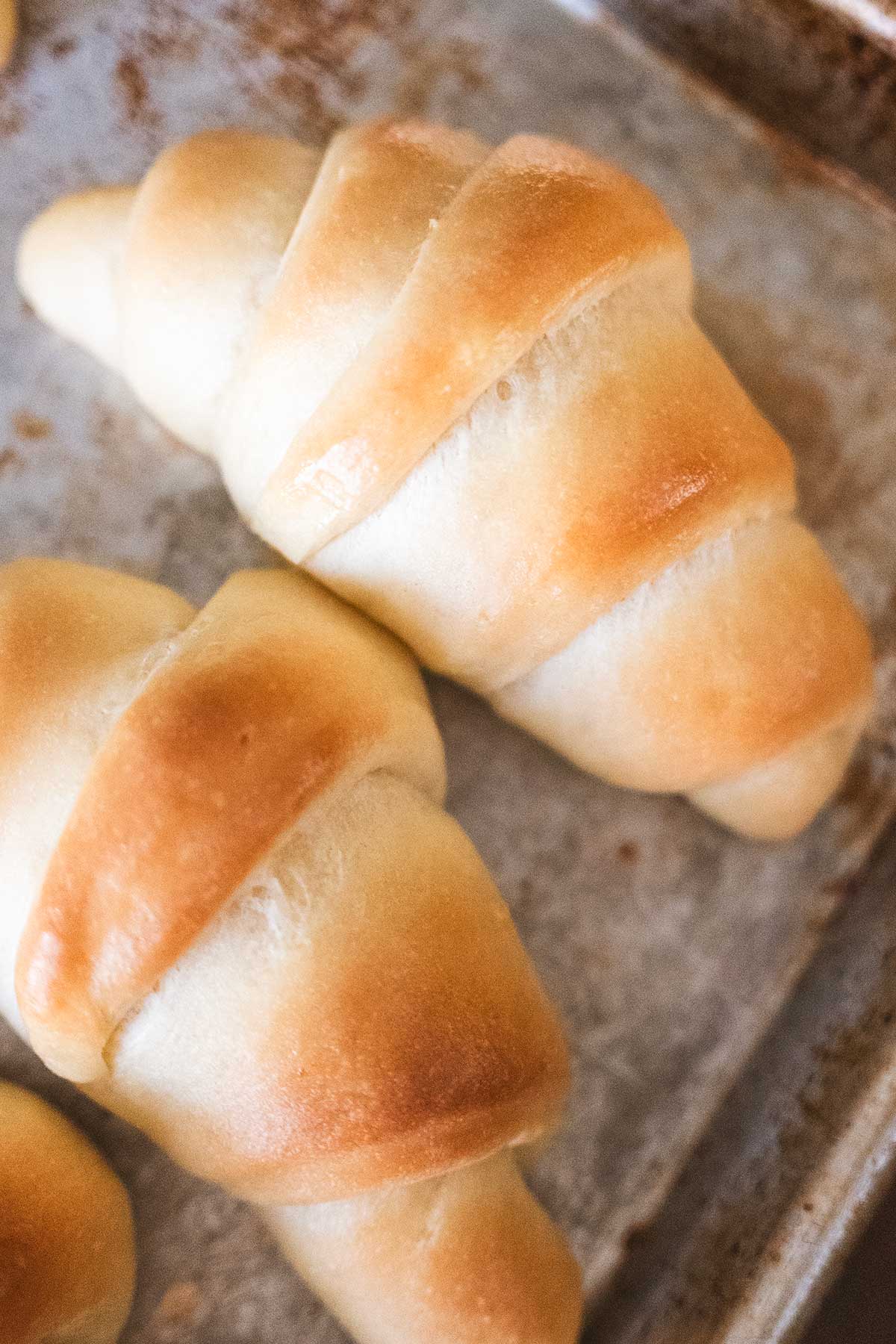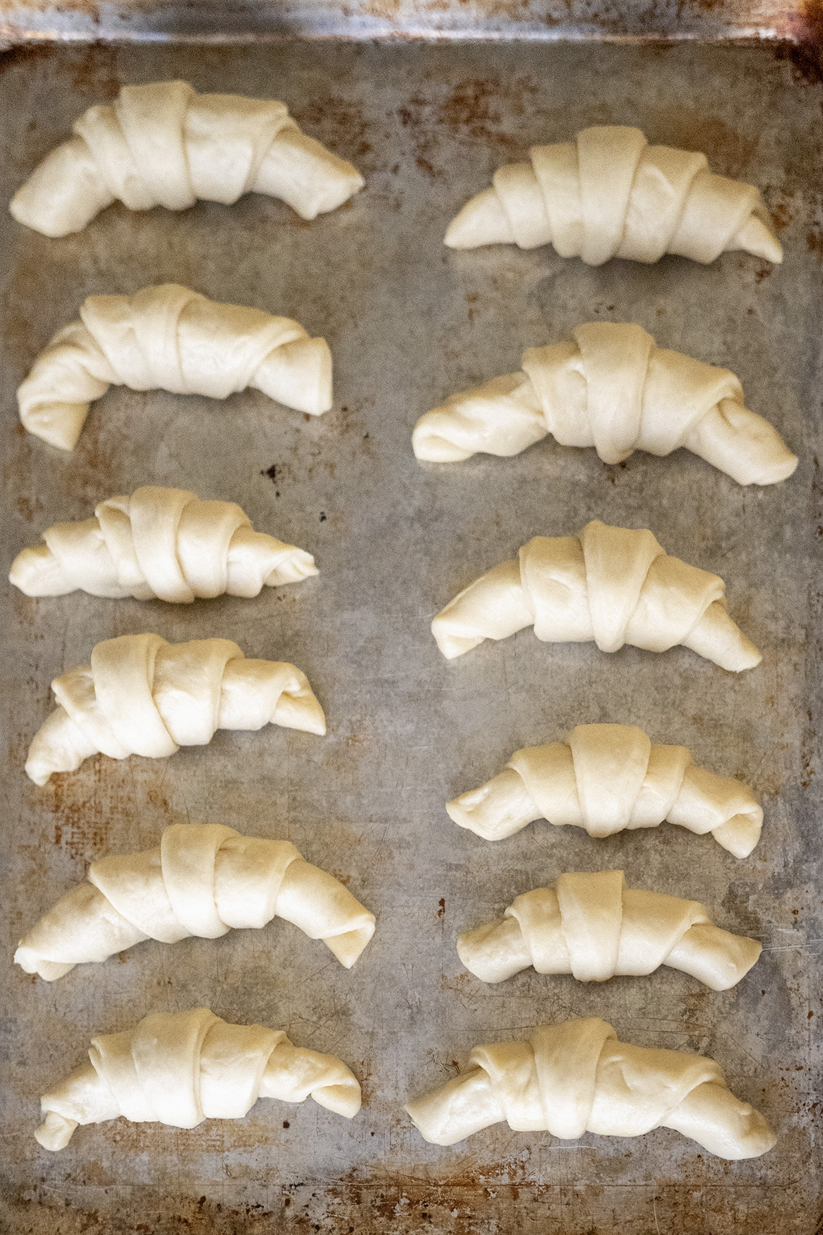 - Pan the Rolls: Place rolls on a greased half-sheet pan, points down for crescents. Cover loosely and let rise until puffy, about 1 hour.