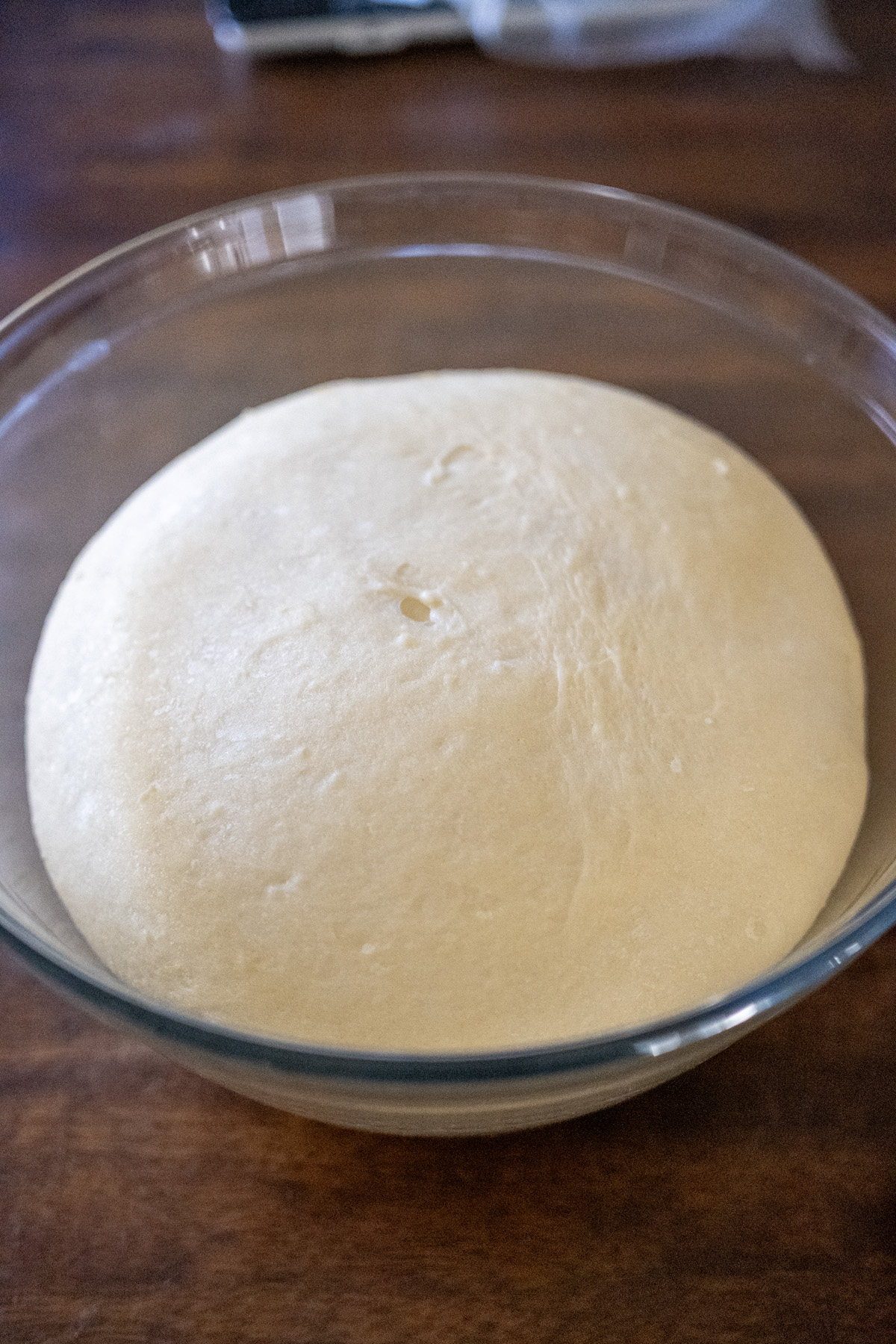 - First Rise: Place dough in a greased bowl, turn to coat, cover with a towel or plastic wrap, and let rise in a warm place until doubled, about 1 hour. (Try a turned-off oven with a pan of hot water.)