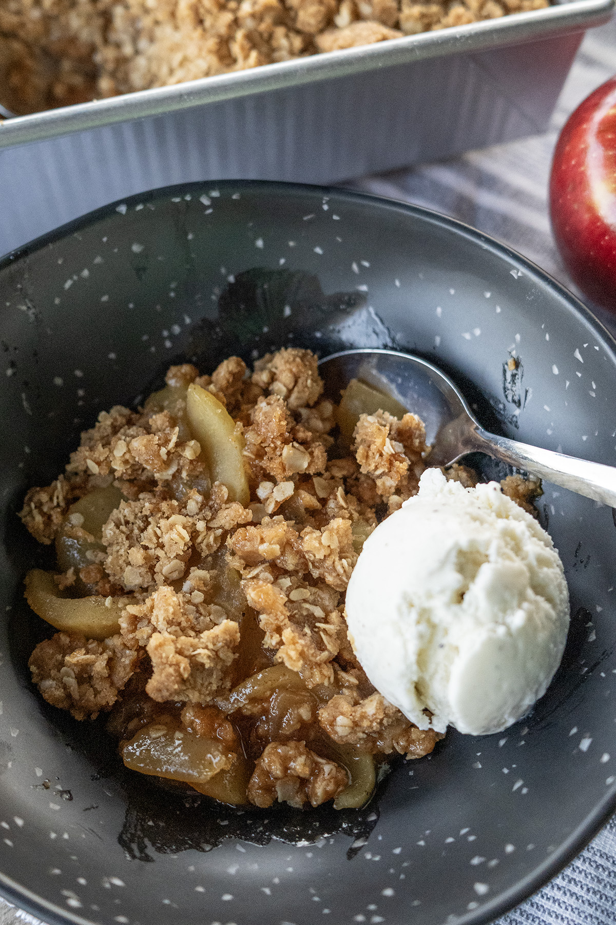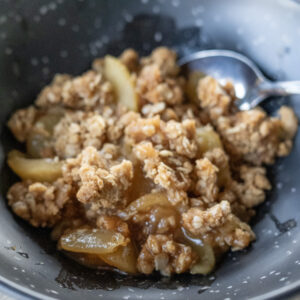 • Bake: Bake for 1 hour to 1 hour 5 minutes, until the topping is golden and the filling is bubbling vigorously. At 1 hour, test the apples with a fork—they should be tender. Bake longer if needed. Cover with foil if the topping browns too quickly.