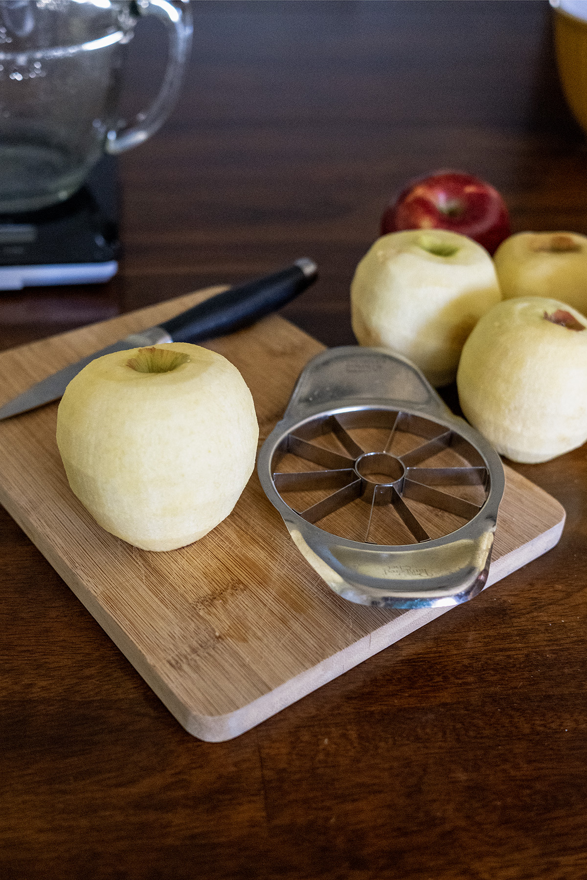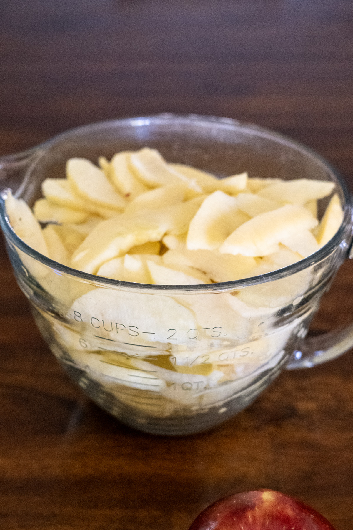 • 10 cups apples, peeled, cored, and ¼-inch sliced (Cosmic Crisp, Granny Smith, Honeycrisp, or Braeburn) 862g