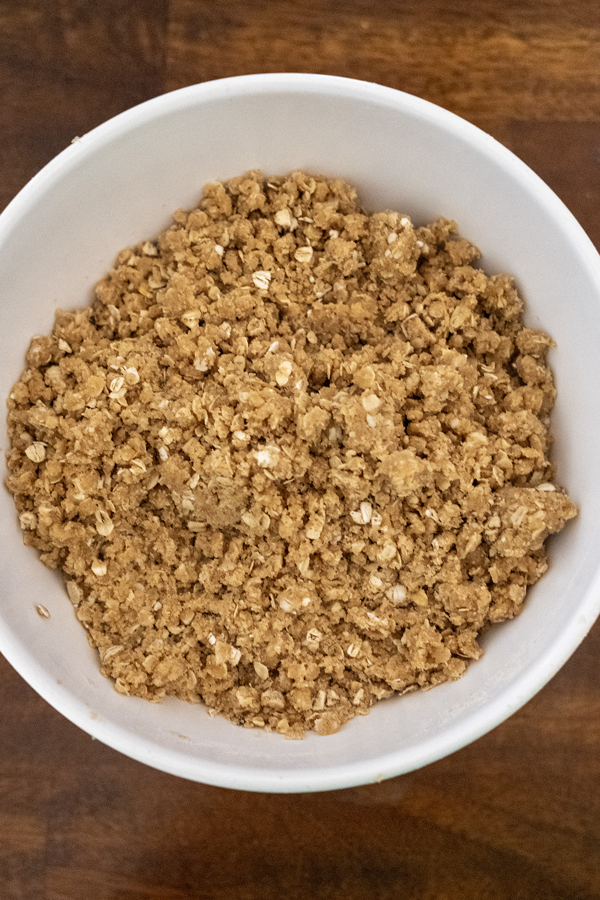• Topping Right: Quick-cooking oats and melted butter make a cohesive, slightly chewy crumble. Want more crunch? Swap ¾ cup (67 g) oats for rolled oats.