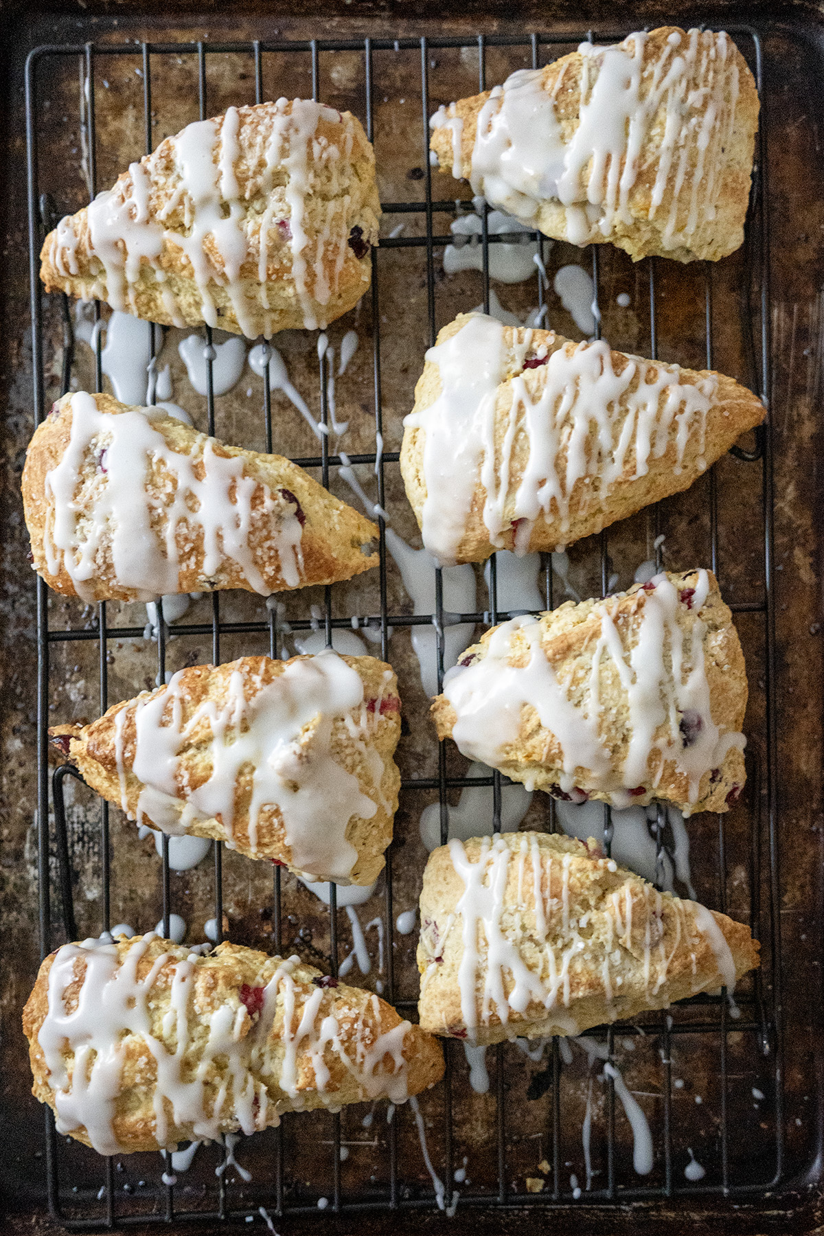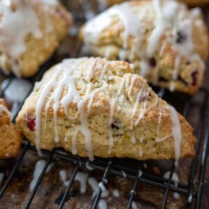 The ultimate flaky, buttery cranberry orange scones with bright citrus flavor and a tangy orange glaze. Perfect for holiday breakfast or brunch!