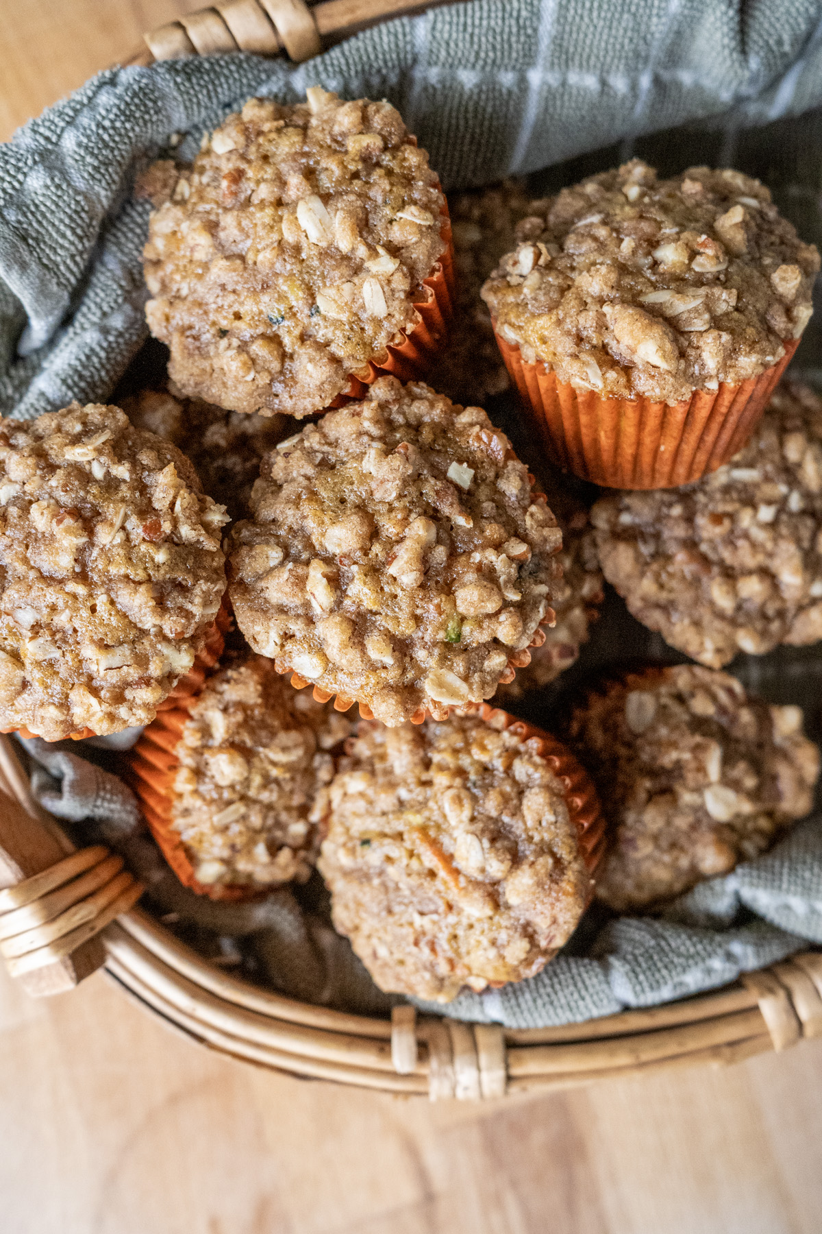These muffins are a fantastic way to sneak veggies into your diet without sacrificing flavor. The zucchini and carrot keep them moist, while the applesauce cuts down on oil without compromising texture. Avocado oil adds a heart-healthy fat with a neutral taste, and the streusel topping with rolled oats brings a satisfying crunch. The granulated sugar keeps the sweetness just right—subtle enough for those who don’t want dessert-level sweetness but enough to make these a treat.